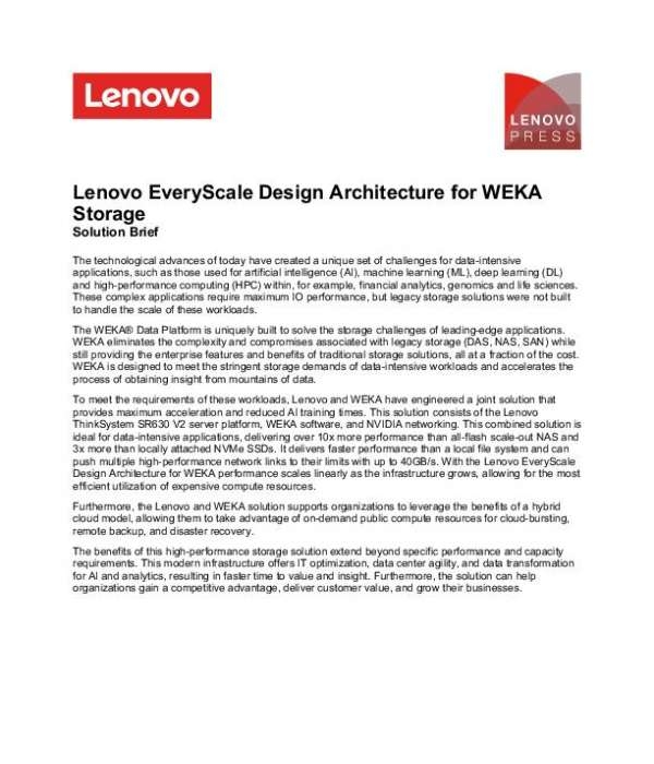 This document provides an in-depth look at the architectural design and benefits of the WEKA Data Platform when integrated with Lenovo's infrastructure.