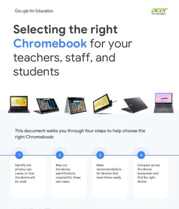 Choosing the right Chromebook shouldn't be guesswork. This brochure provides an easy-to-follow guide for matching device performance and features to different education roles. Download the brochure to streamline your device planning, and contact Computer Age Electronics for expert help selecting the right solution.