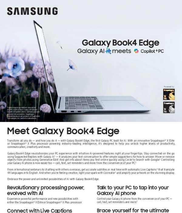 Business leaders want devices that keep them ahead. Galaxy Book4 Edge delivers AI-driven performance with Snapdragon processors, live translations in real time, and intuitive tools for smarter productivity and creativity. Download the datasheet to explore the specs, and contact Computer Age Electronics to find out how this device can help your team embrace the future of work.