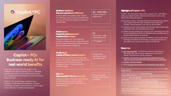 Organizations need devices that help teams work smarter, communicate clearly, and protect data without adding complexity. This infographic breaks down how Copilot+ PCs bring together fast performance, advanced security, and unique AI features made possible by a powerful 40+ TOPS NPU. View the infographic to explore these highlights and contact Computer Age Electronics for guidance on choosing the right Copilot+ PCs.